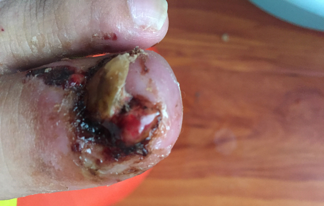 没办法,去了县城的人民医院,医生看了我的情况,直接就让拔甲。想着去了医院就听医生的肯定没错,又不是什么大病。做了第一次拔甲,以为指甲都拔了肯定也就好了。没想到长出来的指甲直接长进了肉里...